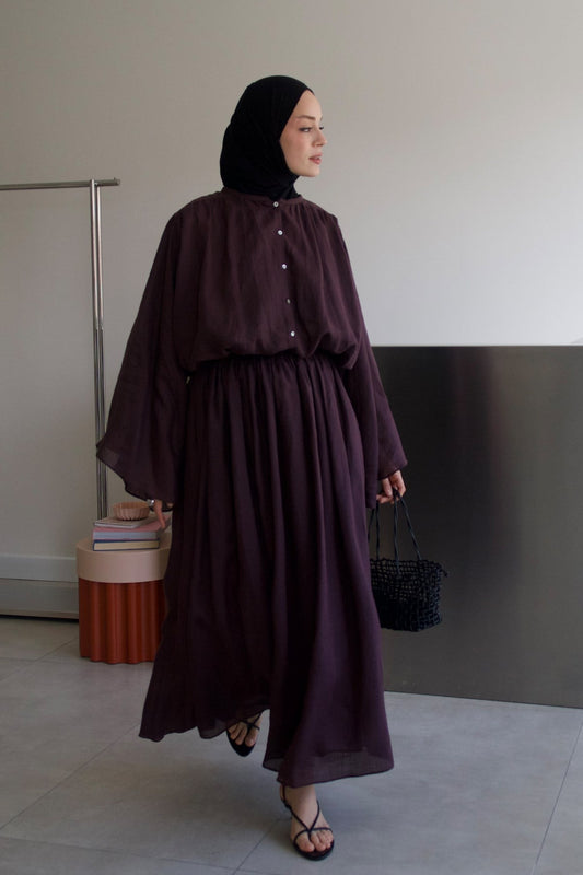 Molie Linen Skirt Set - Dark Brown
