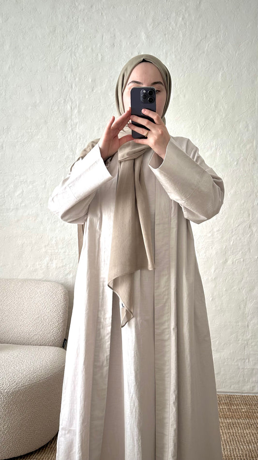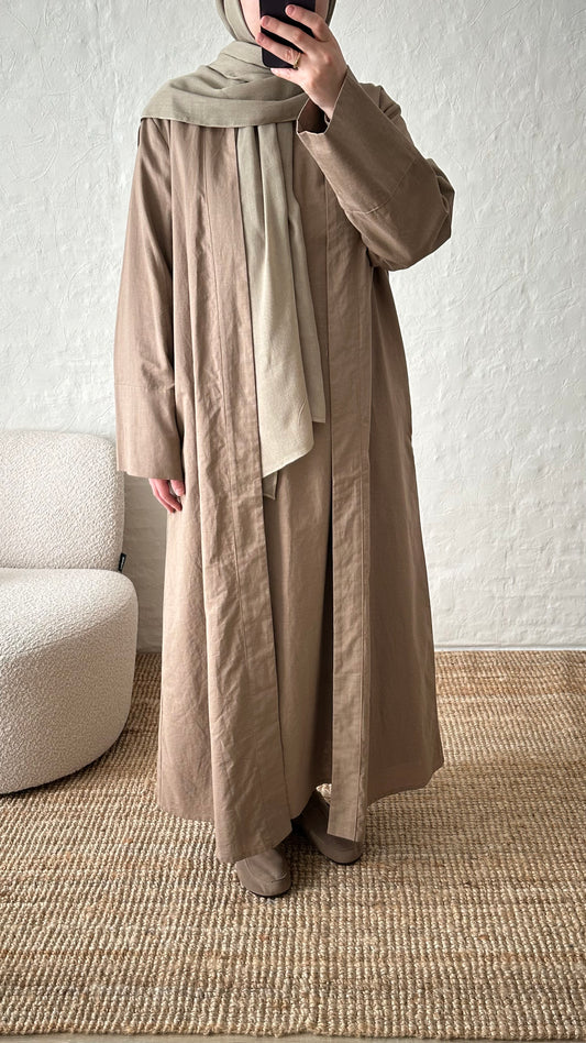 Rumi 2-piece Linen Abaya Set - Light Brown