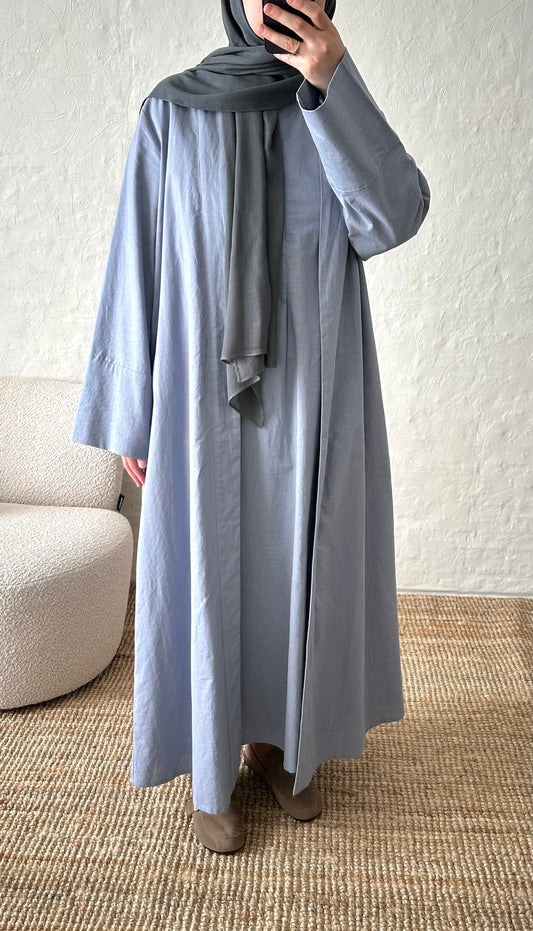 Rumi 2-piece Linen Abaya Set - Blue Gray