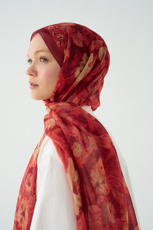 Mirage Floral Hijab- Red