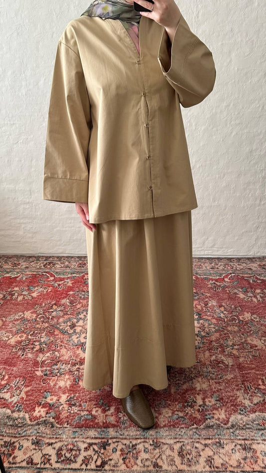 Vela Cotton Skirt & Top Set - Camel