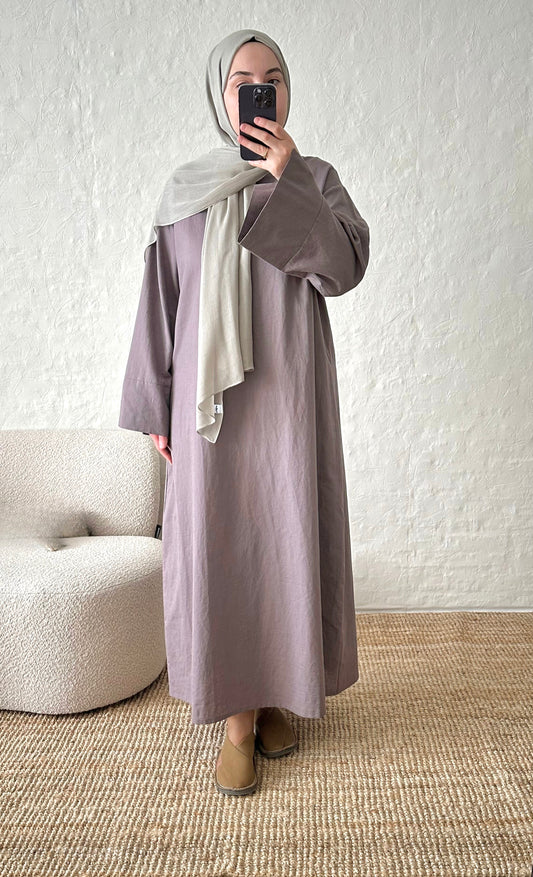 AanbiedingRumi 2-piece Linen Abaya Set - Stone