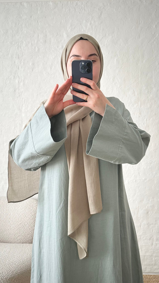 AanbiedingRumi 2-piece Linen Abaya Set - Sage Green