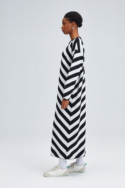 AanbiedingECRU - STRIPED KNITTED DRESS