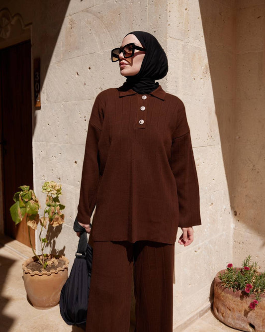 AanbiedingBROWN - KNITTED TOP & TROUSER SET