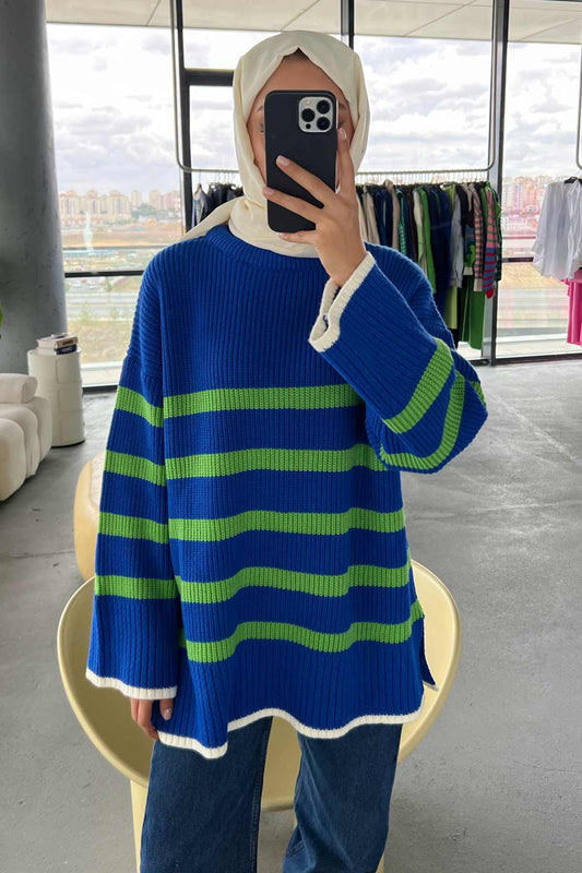 AanbiedingRIBBED STRIPED KNIT SWEATER - SAX BLUE